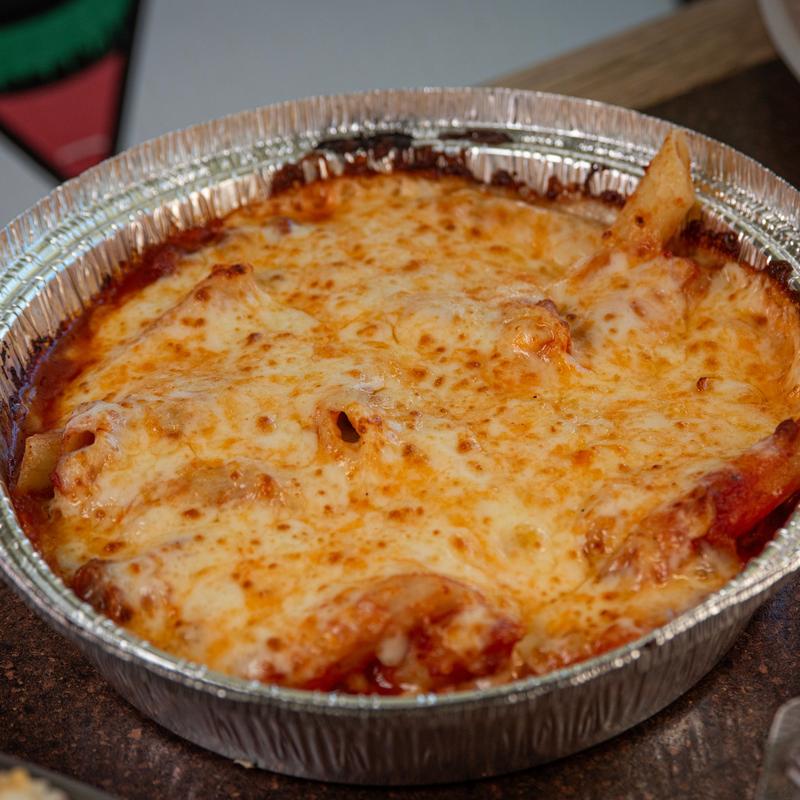 Choice of meat or marinara sauce, 2 petite Greek salads or 2 cups of soup, 12 breadsticks