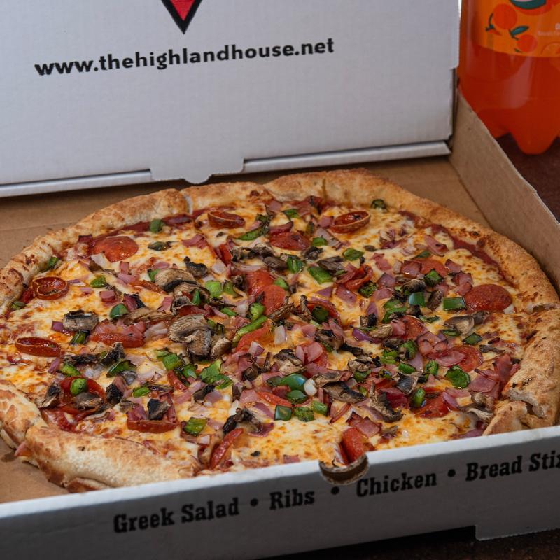 14" Pepperoni, ham, sausage, ground beef, green peppers, onions and mushrooms
