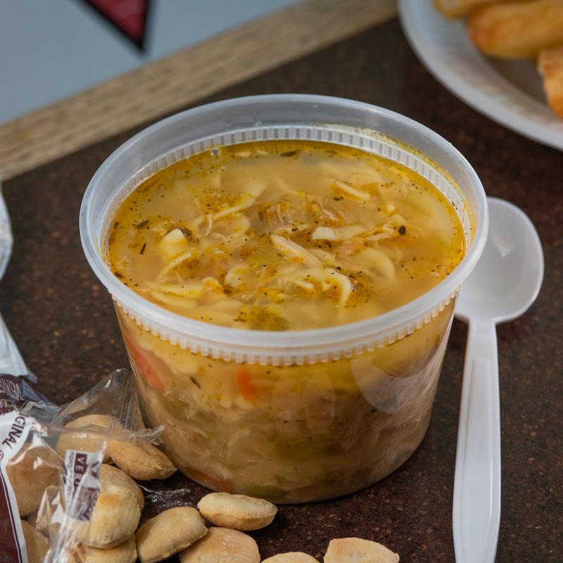 Whole chicken, 2 petite Greek salads or 2 cups of soup, 12 breadsticks